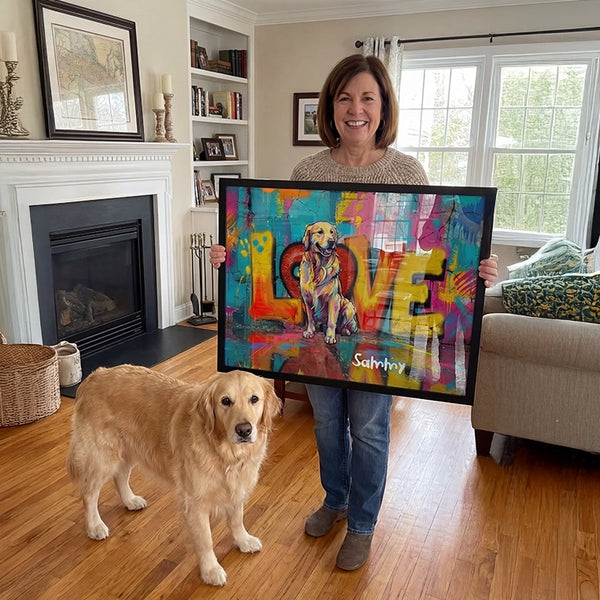 "My dog looks absolutely amazing on the poster. The colors are so vibrant — it's the centerpiece of our living room now."
