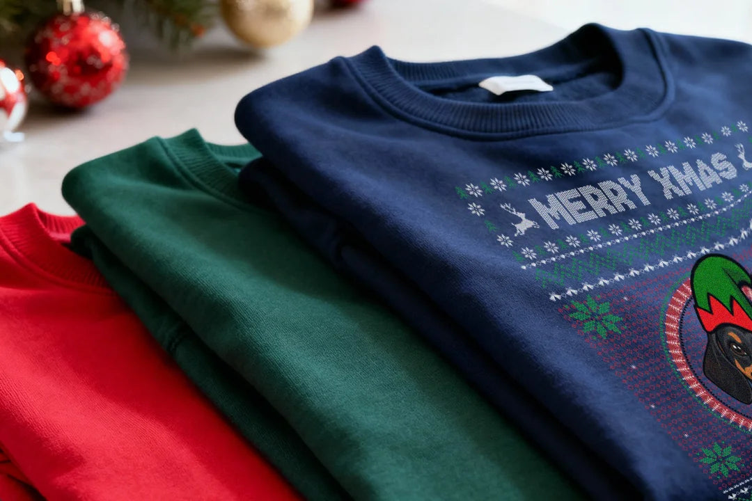 Your custom sweater is made and shipped in 4–7 business days – just in time for the holidays!