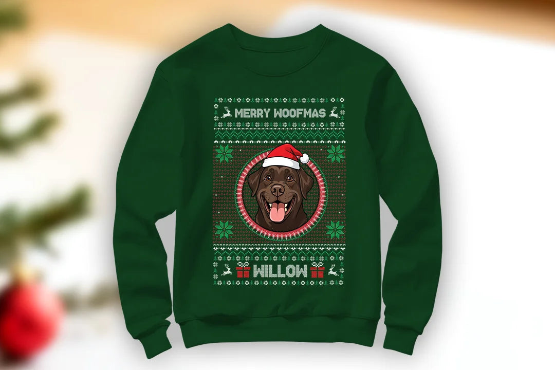 Create your own custom sweater: Upload your favorite pet photo, choose festive add-ons, and add personal text – like your pet’s name or a holiday message. From “Merry Xmas” to “Happy Howlidays” – it’s all up to you!