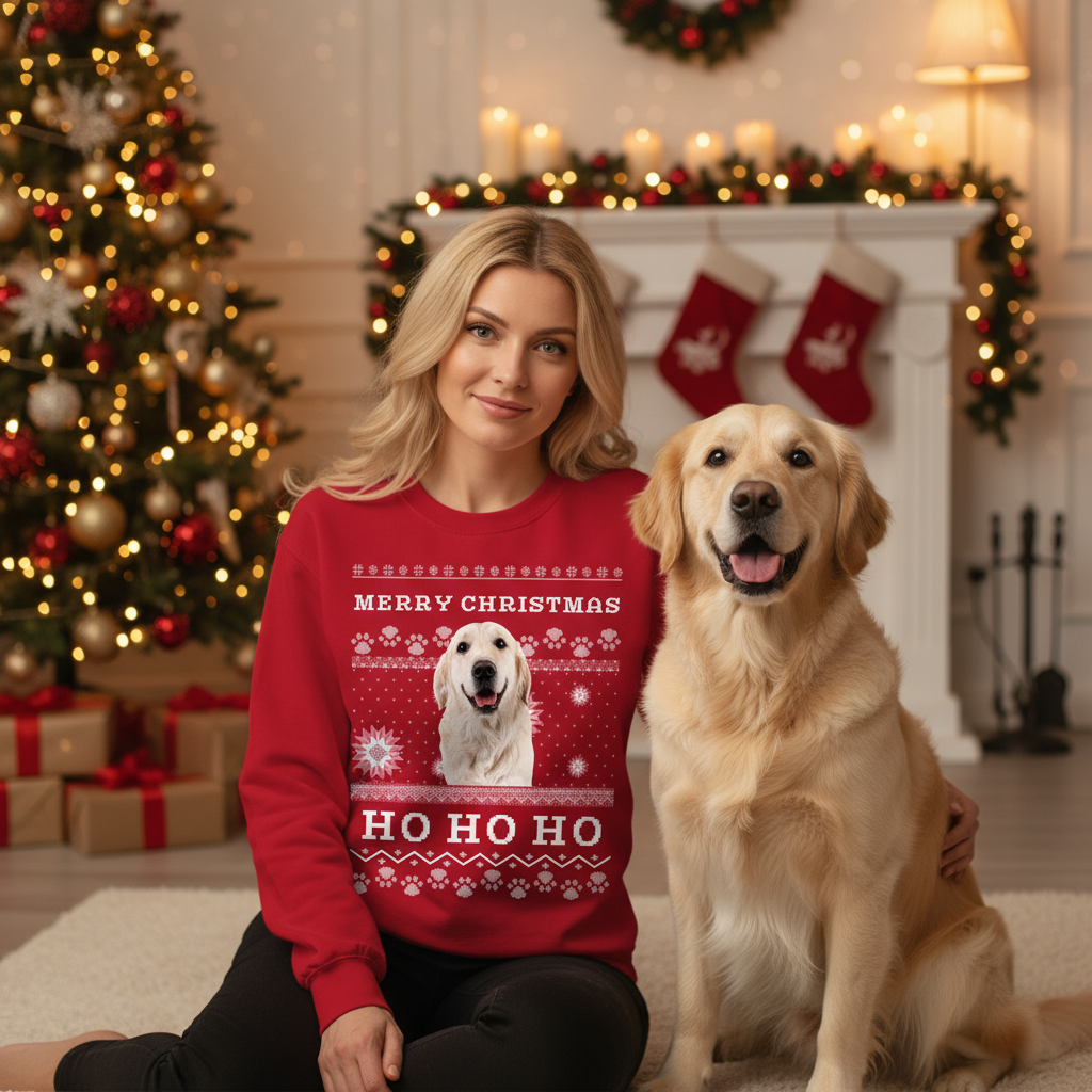 Make this Christmas even more personal with our "Ho Ho Ho" sweater – featuring your pet as the star! Just upload a photo and surprise your loved ones (or yourself!) with a one-of-a-kind gift.
