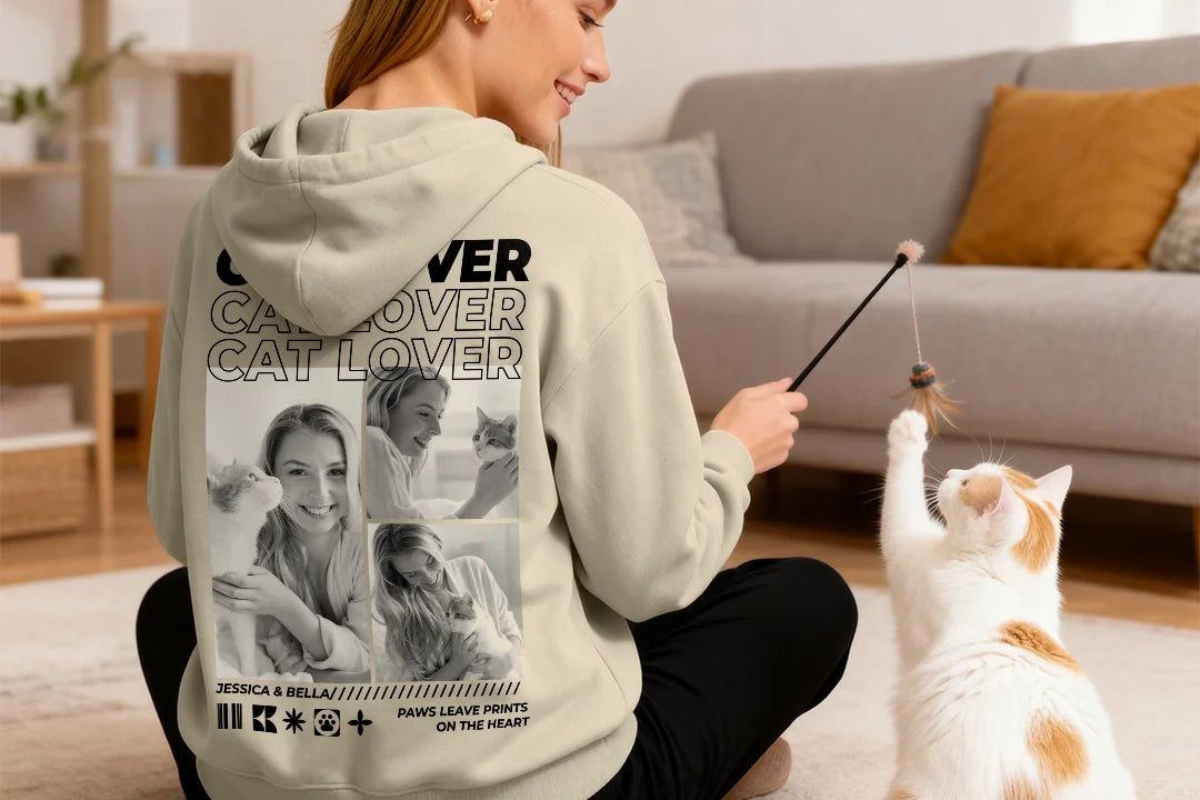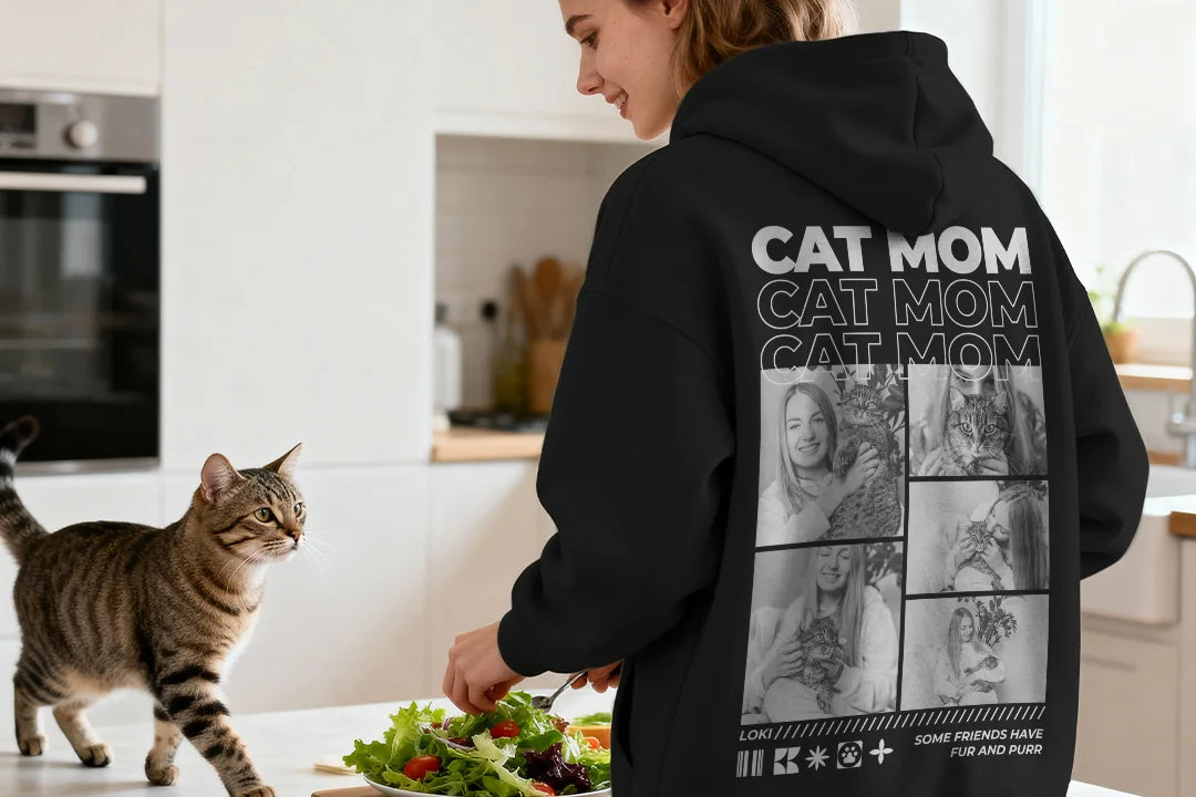 The personalized "Cat Mom" hoodie is more than just clothing — it’s a tribute to your bond. Add up to 8 favorite photos, names & loving quotes. A piece to cherish every day.