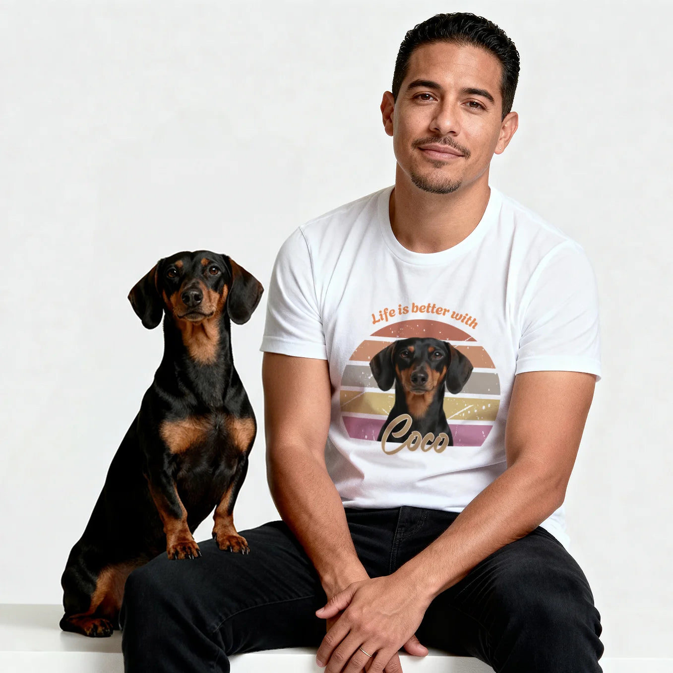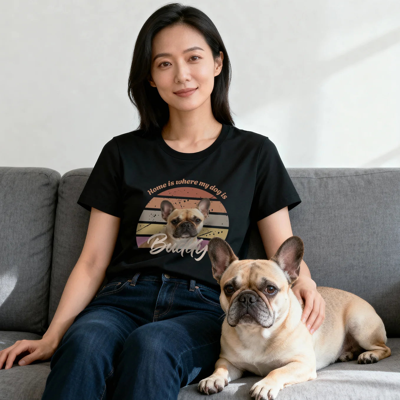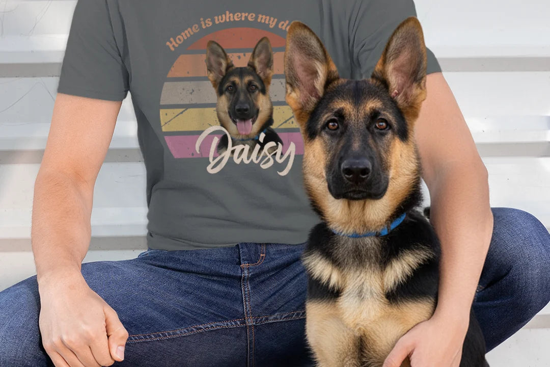 Keep your dog’s memory close with our personalized retro T-shirt. Print your favorite photo and create a one-of-a-kind piece that’s perfect as a gift or for yourself!