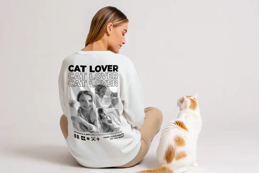 This personalized sweater is a true statement piece for anyone who holds their cat close to their heart. Choose between CAT MOM or CAT LOVER and upload up to 8 favorite photos. Add your favorite quote or your cat’s name to complete the design – turning it into a one-of-a-kind keepsake with emotional value.