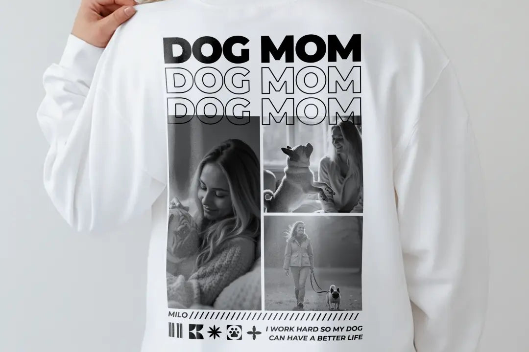 Show the world who stole your heart – your four-legged best friend! This personalized "Dog Mom" sweater features your favorite quote, your dog’s name, and up to 8 photos of you and your pup. A truly one-of-a-kind piece that celebrates your bond forever.