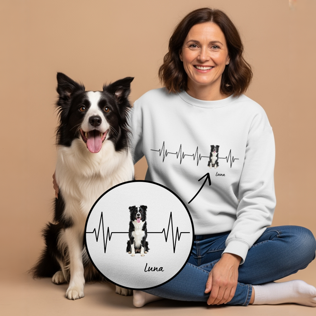 Surprise your loved ones with a unique gift. The "Pet Heartbeat" sweater is ideal for all animal lovers and can feature up to 3 pets.