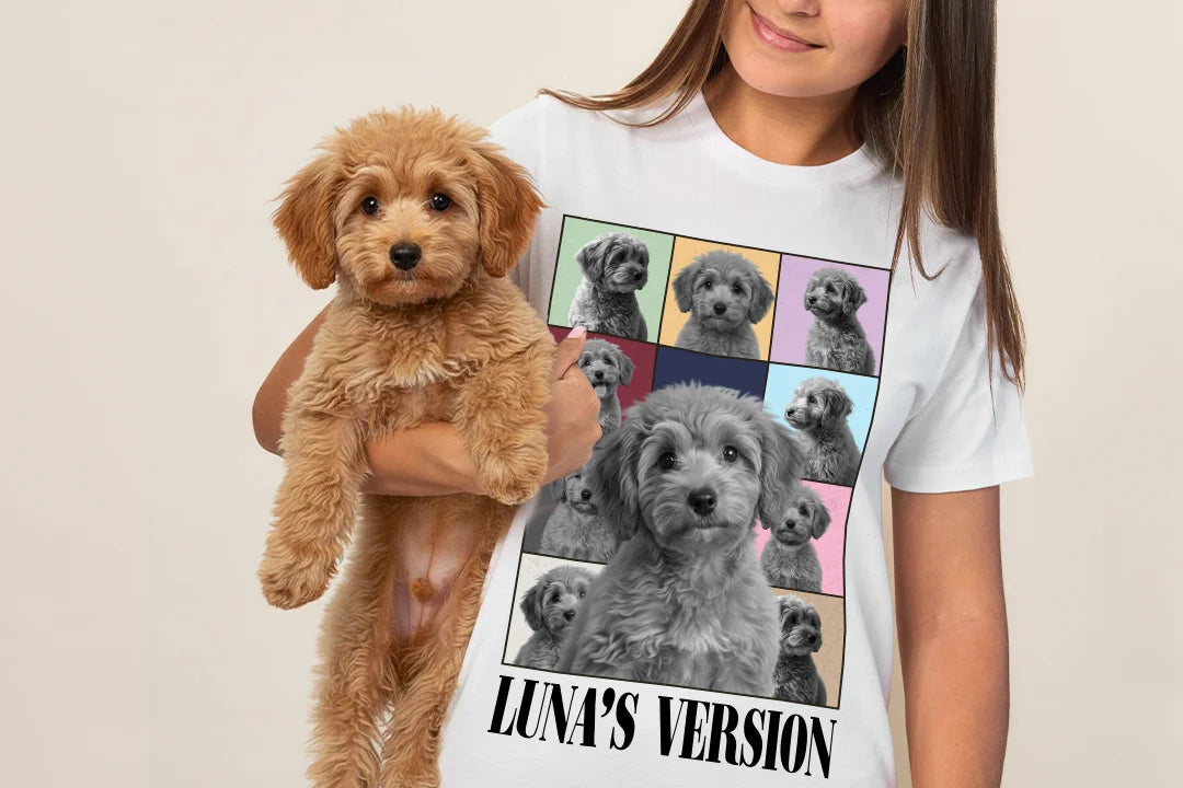 Create a personalized T-shirt with photos of your furry friend—whether it’s a dog, cat, or another pet. We'll craft a custom design that’s uniquely yours.